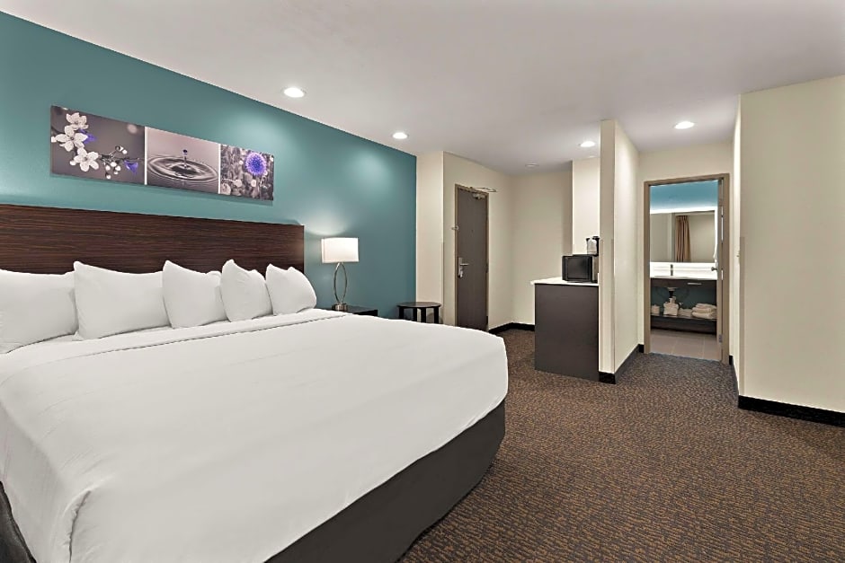 1 King Bed Studio Suite Non-Smoking is 269 square feet and includes a king-size bed 150-183 width.