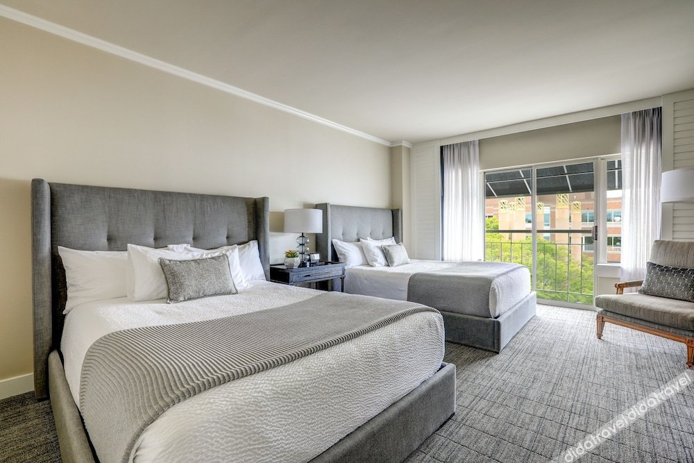 The Woodmark Hotel & Still Spa offers a variety of rooms including double, quadruple, and suite options. The occupancy ranges from 2 to 4 adults per room, with no accommodations for children. Smoking is not allowed in any of the rooms. The bed sizes vary between King and Queen, and the room sizes are all 312 sqft except for one suite that is 646 sqft.