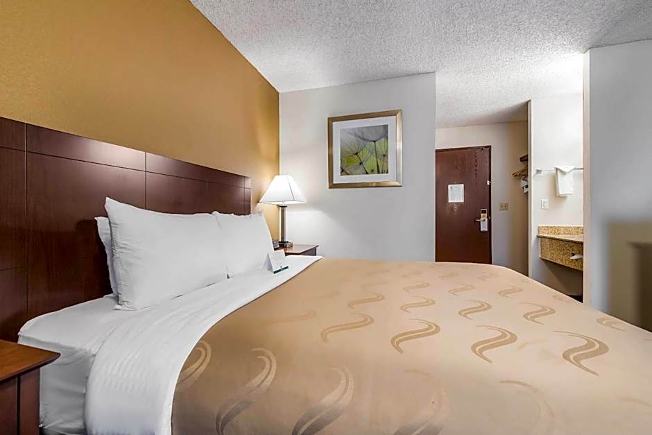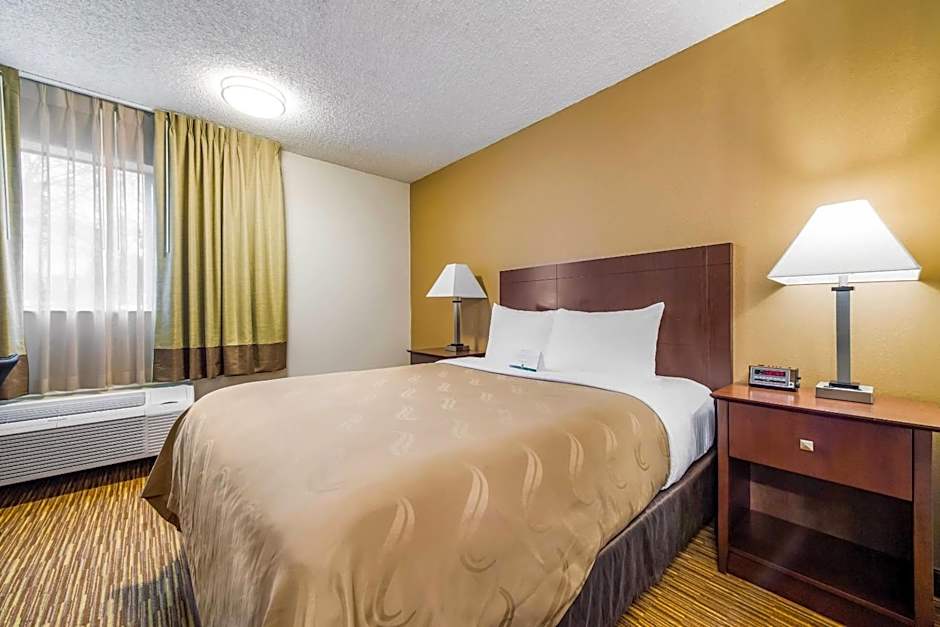 Room options span Queen Rooms in smoking and non-smoking varieties, including configurations with two Queen beds, plus Standard Rooms, Studios, and an Efficiency with a Queen bed. For extra space, a Suite and a 1 King Bed Suite provide larger layouts.