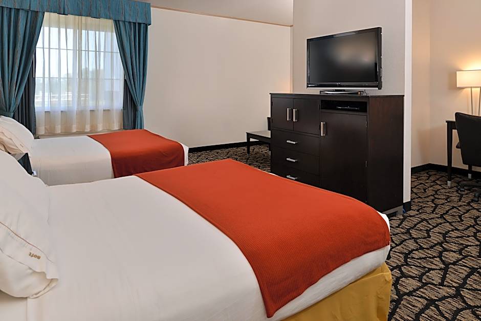 The Holiday Inn Express Hotel & Suites Tacoma South - Lakewood offers various types of rooms including King Rooms, Twin Rooms, King Suite Whirlpool, Room Selected at Check-In, King Suites, Twin Room - Mobility Access with Bath Tub, Suite - Mobility Access/Hearing Accessible, and Deluxe Queen Room with Two Queen Beds. The rooms have an average size of 323 sqft and do not allow smoking. The occupancy ranges from 2 adults and 1 child to 6 adults and 4 children. The bed sizes vary, with options such as King size beds, Twin beds, Queen size beds, and Sofa beds.