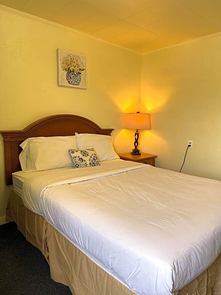 If you prefer a more intimate setting, the "1 Queen Bed" room at Lakeside Motel is a perfect choice for up to 2 adults and 1 child. Enjoy a restful night's sleep in this non-smoking room while taking in the peaceful garden views. With complimentary Wi-Fi access, a private bathroom, and a 24-hour front desk for your convenience, your stay at Lakeside Motel promises to be both pleasant and memorable.