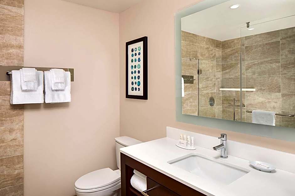 Featuring free toiletries, this suite includes a private bathroom with a bath, a shower and a hairdryer. Guests can make meals in the kitchen that features a stovetop, a refrigerator, a dishwasher and kitchenware. This wheelchair accessible suite has air conditioning, a seating area with a flat-screen TV and a roll-in shower.