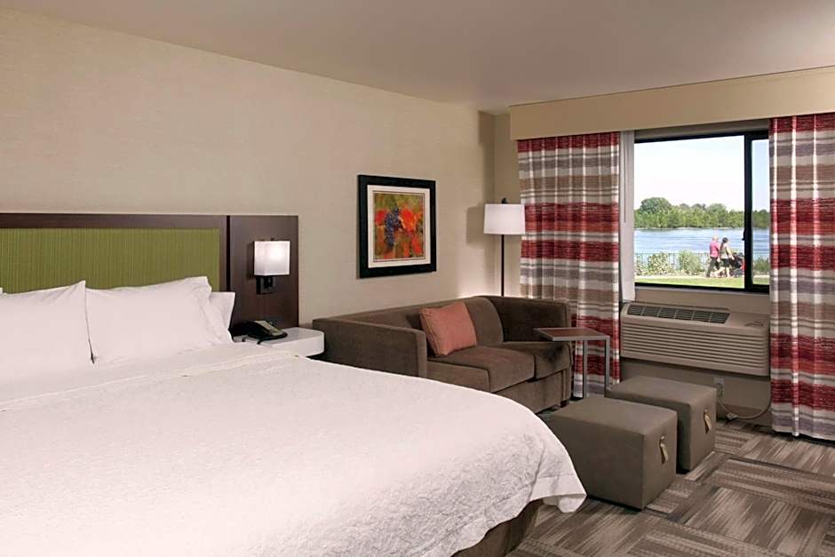 The Hampton Inn Richland-Tri Cities offers a variety of room options. The rooms range from King Studios with a river view to Deluxe Double or Twin Rooms with a balcony. The rooms have a size of 398 sqft and do not allow smoking. They accommodate various numbers of adults and children, with bed options including King size beds and Queen size beds.