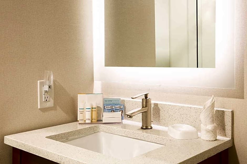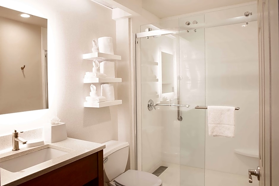 This mobility and hearing accessible, non-smoking room features one king-sized bed, and an accessible bath tub. The room also has a visual alarm and notification devices for the doorbell or door knock and incoming phone calls. The room features comfortable soft seating, a HDTV, and easy to operate alarm clock/radio. The free WiFi will help you stay connected while on the road. If you prefer not to work at the desk, you can use the convenient lap-desk instead. You'll also enjoy the convenience of having a coffeemaker with tea service and iron/ironing board in your room. Any corresponding photo may not reflect the specific accessible room type or room feature.