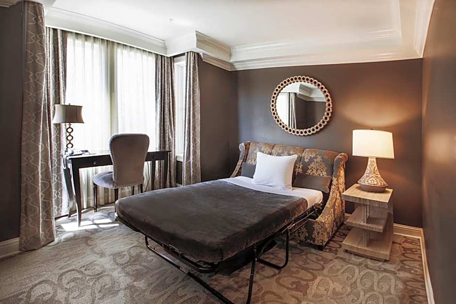 Flat-screen HD cable TV, a spacious work desk, coffee-making facilities and a sofa bed is featured in this suite. A fireplace and a flat-screen HD cable TV are offered in the separate bedroom. The private bathroom provides bathrobes, slippers and a soaking tub.
