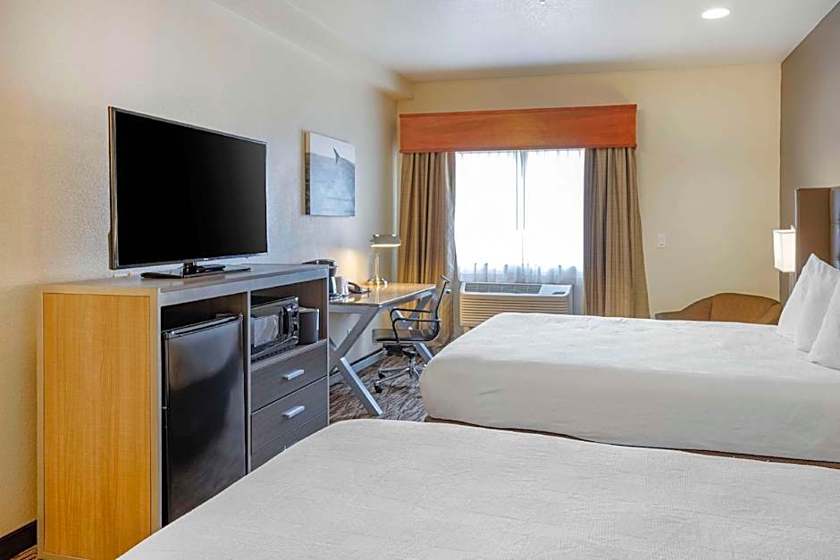 When it comes to the room types available at the Best Western PLUS Peppertree Airport Inn, you'll have several options to choose from. If you require accessibility features, you'll find a King Room with Roll-In Shower - Mobility Access/Non-Smoking available. For those traveling in groups or with larger families, the Queen Room with Two Queen Beds and Walk-In Shower - Mobility Access/Non-Smoking is a great choice. And if you're simply looking for a comfortable and spacious room, you won't be disappointed with the King Room or the Queen Room with Two Queen Beds. All rooms are equipped with modern amenities, including air conditioning and a private bathroom with free toiletries, ensuring a pleasant and relaxing stay for all guests.