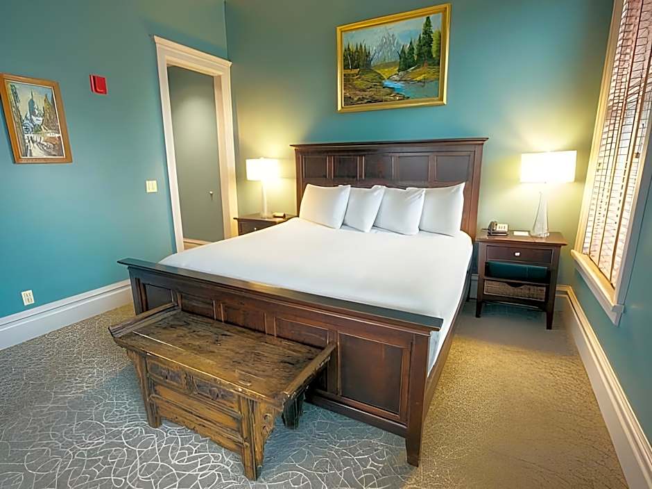 Older Charming property. Location, location! You can walk to restaurants, bars, music all very close. Our room was on the 2nd floor, which was where there was a large seating/lobby type area. Decorated with period type of antiques and comfortable chairs. Coffee/tea available all day. There was a little alcove/hall before entering our door, which was a nice buffer to noise. Gilded Unicorn connected to the property which was a very cool basement bar/restaurant