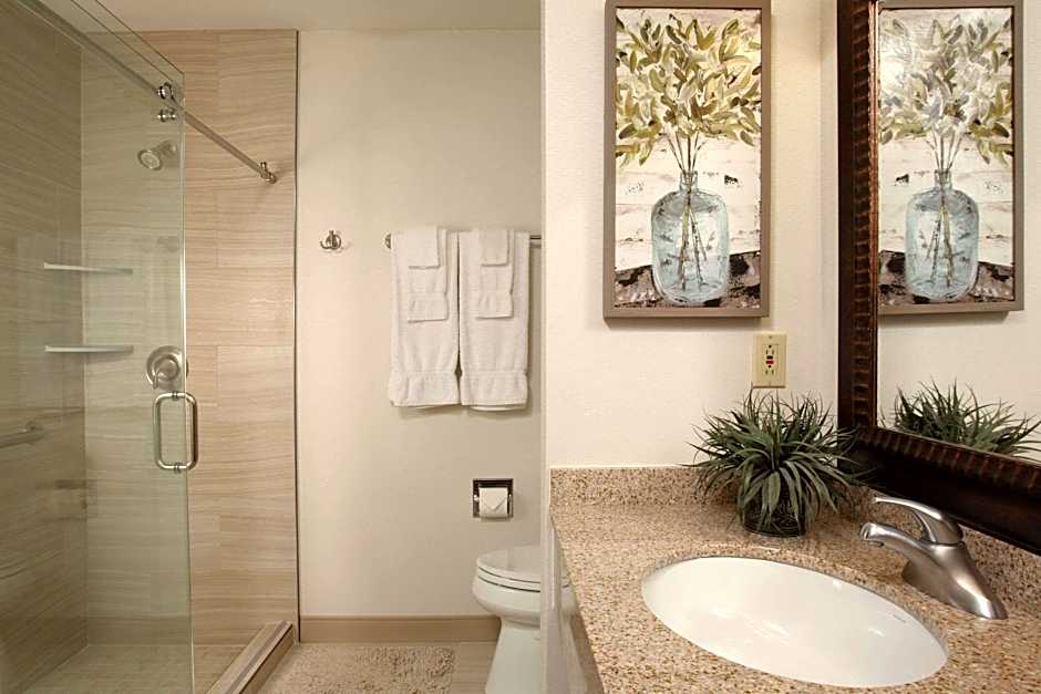 This is a nice hotel and well-located for our visit to friends living north of town. Unfortunately, it was just an overnight so did not take advantage of the hotel amenities. The breakfast room has a nice environment. With outside temps in the 90's, the room A/C did a good job of keeping the room cool. Room lighting is a little dark, but at least one overhead light.