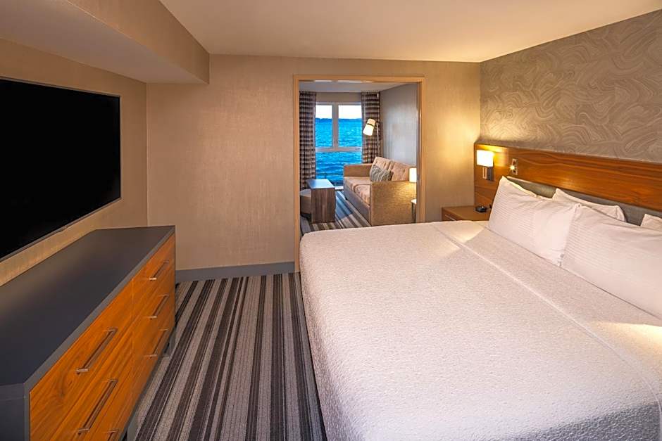 Featuring sweeping views of Commencement Bay and a fireplace, this plush room includes a 55" flat screen TV with cable.