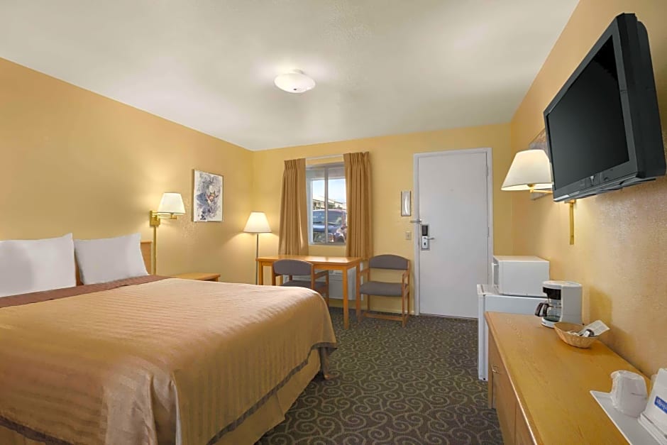 The Travelodge by Wyndham Wenatchee offers a variety of room types including Queen Rooms with Two Queen Beds, King Rooms, Queen Studios Suites, and Studio Suites with Two Queen Beds. All rooms are non-smoking and accommodate either 2 adults and 1 child or 4 adults and 3 children. Bed sizes range from Queen size to King size.
