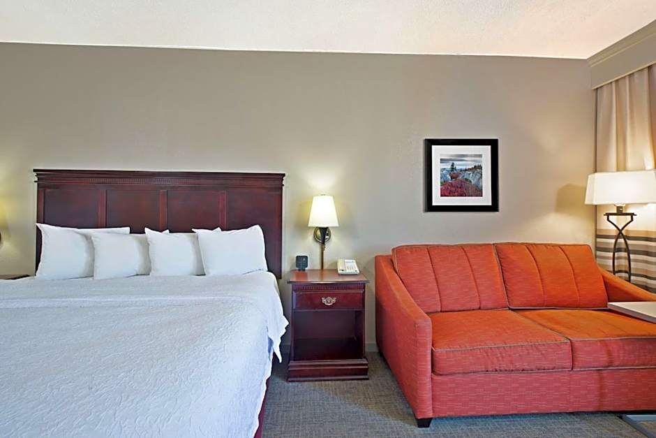 32-inch HDTV, desk, sofa bed, coffeemaker, microwave, refrigerator, free WiFi Unwind in this welcoming room with one king clean and fresh Hampton bed® and a sofa bed. Relax watching the 32-inch LCD HDTV or stay on top of business at the desk. Keep up-to-date with free WiFi. Convenient amenities include a coffeemaker, refrigerator, and microwave. The bathroom includes a shower with a curved rod that allows for more space and light.