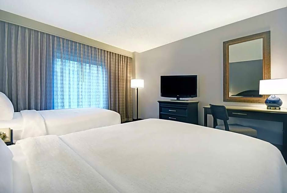 This mobility accessible standard suite features two double beds, and a roll-in shower. Any corresponding photo may not reflect the specific accessible room type or room feature.