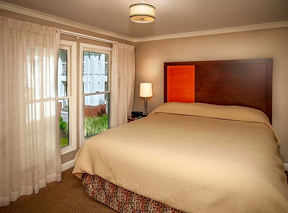 This room features plush bedding and a private bathroom with a granite shower.
