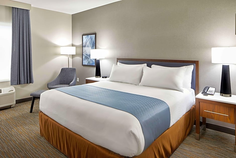 Each room is thoughtfully designed and furnished with modern amenities. Guests can enjoy a peaceful night's sleep on the plush king or queen size beds. The spacious rooms are equipped with free WiFi, allowing guests to stay connected and entertained throughout their stay. Whether you're traveling with a large group or on a romantic getaway, Wingate by Wyndham has the perfect room to make your stay comfortable and enjoyable.