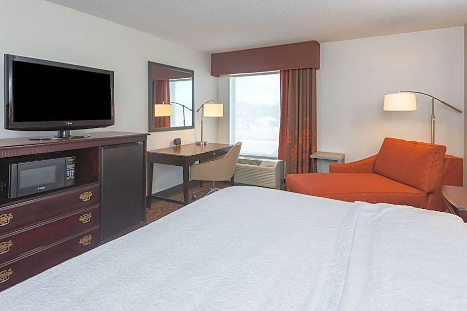 Work area, free WiFi, 32-inch TV, tea/coffeemaker Have a relaxing stay in this queen room that features 2 clean and fresh Hampton beds®. Watch your favorite show on the 32-inch TV and enjoy a delicious hot drink from your in-room tea/coffeemaker. The room includes a spacious work desk and free WiFi to let you catch up on work while traveling. In the bathroom you'll enjoy fluffy towels, a WaterPik® showerhead and curved shower rod for added space and light.