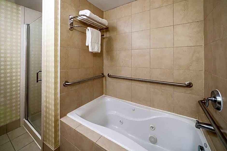 This mobility and hearing accessible standard room features two queen-sized beds, and an accessible tub. The room also has a visual alarm, and notification devices for the doorbell or door knock and incoming telephone calls. Grab bar in tub with attached accessible seating, lowered vanity in bathroom, and lowered closet shelf. The ergonomic Mirra chair by Herman Miller is good for your back and better for work. Enjoy your favorite television show on our 36-inch HDTV. There's also a microwave, refrigerator and coffee/tea maker to help you feel at home. And for conducting business, our rooms ensure your productivity thanks to the spacious work desk, two telephones with dataport and voicemail and complimentary WiFi access. Any corresponding photo may not reflect the specific accessible room type or room feature.