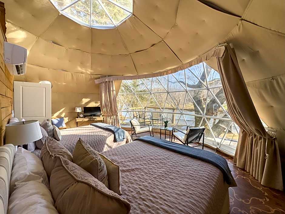 Room choices range from the River View Suite with two Queen beds and three Twin beds to the Rain Song Suite featuring a Queen and a Twin. Traditional layouts include Queen and King rooms, along with distinct options like Carriage House Queen, Autumn House Queen, and House variations. For a different vibe, there’s a Tent option with two Queen beds, plus family-friendly layouts such as the Family Double Room with three Twin beds and two Double beds, and Meadow House, King, Bathtub.