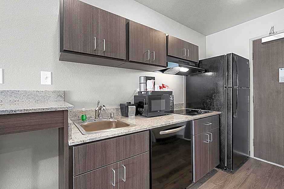This hotel is very modern and very clean. As of June 2025, the hallways and stairs still have that new carpet smell! Rooms feature a kitchenette with electric stove, microwave oven and full-size refrigerator. Guest laundry contains multiple washing machines and clothes dryers so that multiple guests can use simultaneously. Exercise facility exceeded my expectations as it includes a recumbent bike in addition to the standard workout equipment. The location is great for those needing a place to rest after a long day traveling with a grocery store and gas station/convenience store adjacent to the hotel.