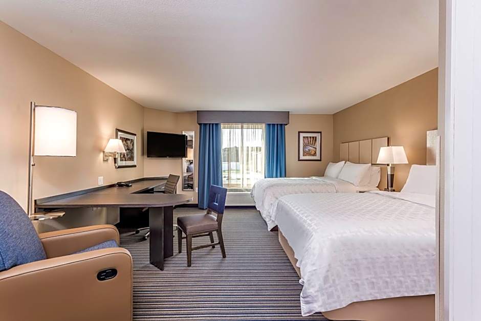 The Candlewood Suites Eau Claire I-94 offers a variety of rooms including Queen Studio Suites with two queen beds, King Studio Suites, and Standard Rooms. All rooms are non-smoking and have different occupancy capacities. The Queen Studio Suites and King Studio Suites can accommodate 2 adults and 1 child, while the Standard Room can accommodate 4 adults and 3 children. The sizes of the rooms range from 398 sqft to 495 sqft.