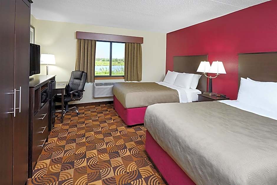The AmericInn by Wyndham Elkhorn Near Lake Geneva offers a variety of room types. These include One-Bedroom Luxury King Suites, Queen Rooms, Superior King Suites, King Studio Suites, King Rooms, Executive Queen Rooms with Two Queen Beds, One-Bedroom Suites with Two Queen Beds, and Deluxe Queen Rooms. All rooms are non-smoking and vary in size from 205 sqft to 904 sqft. The rooms can accommodate between 3 and 6 adults, with options for children as well. The beds range from Queen size to King size, with some rooms also offering a sofa bed.