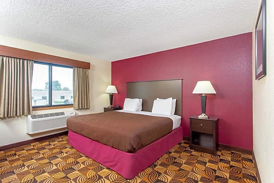 What are the room types available at AmericInn by Wyndham Elkhorn Near Lake Geneva?