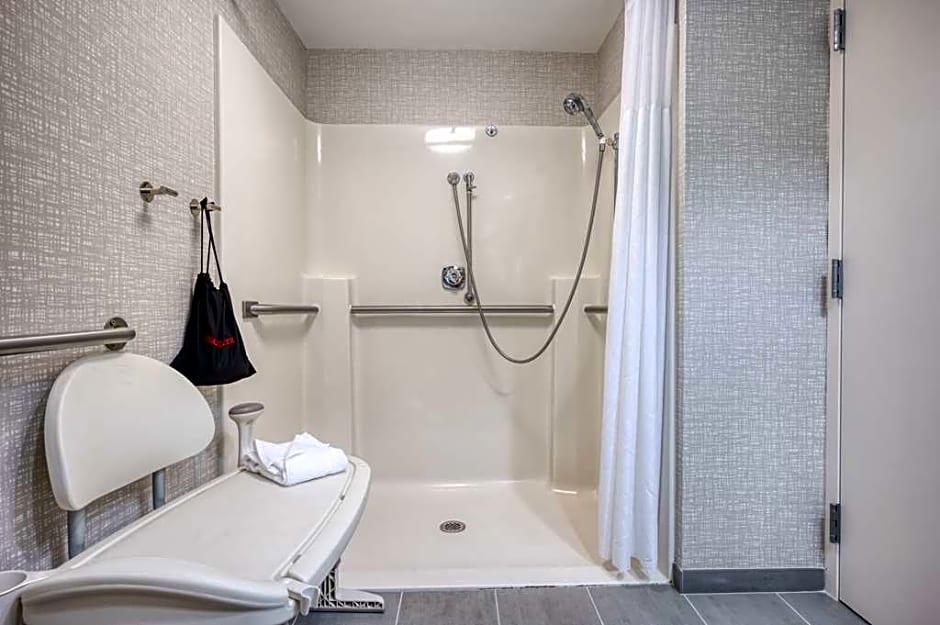 Any corresponding photo may not reflect the specific accessible room type or room feature. This mobility accessible, nonsmoking room features one queen sized bed , and an accessible roll-in shower. The room features comfortable soft seating, a HDTV, and easy to operate alarm clock/radio. The free high speed internet access will help you stay connected while on the road. If you prefer not to work at the desk, you can use the convenient lapdesk instead. You'll also enjoy the convenience of having a coffee maker with tea service and iron/ironing board in your room.