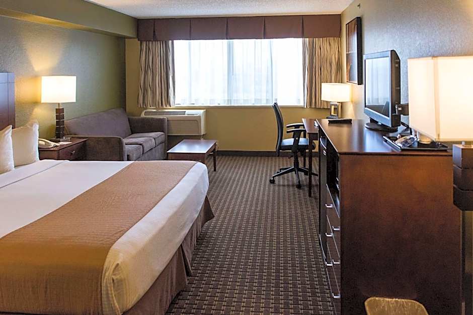 Ready to book your stay? The offers two room types to choose from. The King Room - Disability Access Tub is perfect for those who require additional accessibility features. With a spacious 377 sqft room, comfortable king-size bed, and a bathtub designed for accessibility, you can enjoy a relaxing stay tailored to your needs. Alternatively, the Queen Room with Two Queen Beds - Non-Smoking is ideal for families or groups of friends. With two queen-size beds accommodating up to 4 adults and 3 children, you can rest comfortably in this 280 sqft room. Both room types are non-smoking, ensuring a fresh and clean environment for all guests.