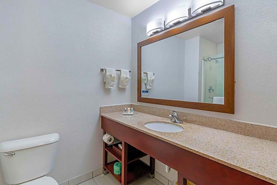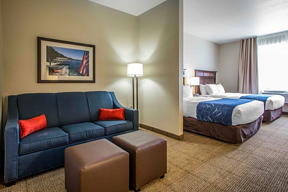 Comfort Suites Lake Geneva East offers three types of rooms. The King Suite with Sofa Bed - Non-Smoking and King Suite - Non-Smoking both have a room size of 549 sqft with a King size bed and can accommodate 4 adults and 3 children. The Queen Suite with Two Queen Beds - Non-Smoking is slightly smaller at 495 sqft and has two Queen size beds, accommodating 6 adults and 4 children. None of the rooms allow smoking.