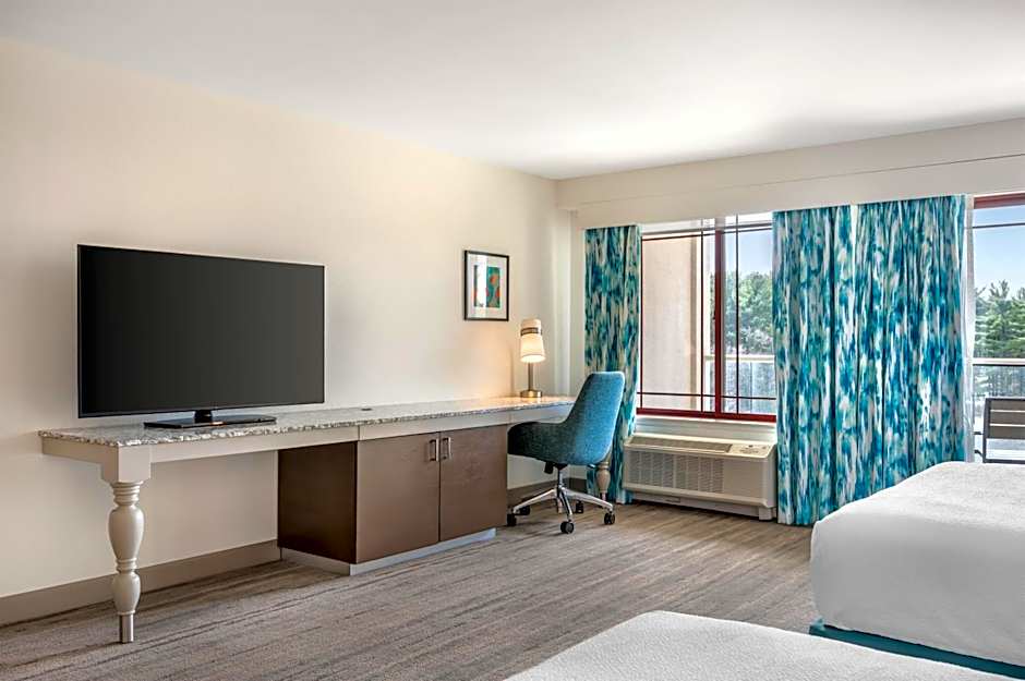 The Hilton Garden Inn Wisconsin Dells offers a variety of room types including Queen Rooms with Balcony, King Rooms with Balcony, One-Bedroom King Suites with Twin Sofa Bed, Deluxe King Rooms with Fireplace, and Queen Rooms with Two Queen Beds. All rooms are non-smoking and have different capacities, accommodating either 2 adults and 1 child or 4 adults and 3 children. Bed sizes vary between rooms, with options including Queen size, King size, and Sofa Beds. Some rooms also offer additional features such as a spa bath or accessibility options.