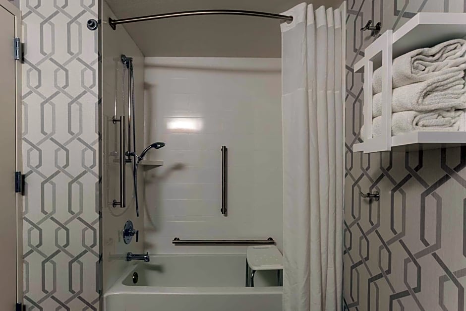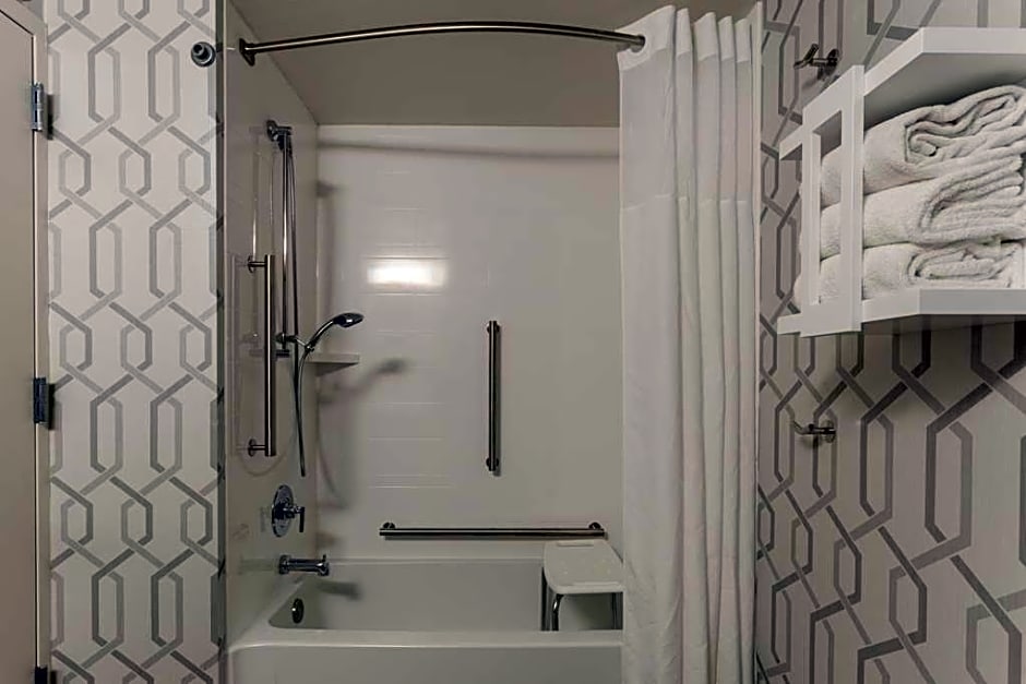 Any corresponding photo may not reflect the specific accessible room type or room feature. This mobility accessible, non-smoking room features one double bed, and an accessible bath tub. The room features comfortable soft seating, a HDTV, and easy to operate alarm clock/radio. The free high-speed internet access will help you stay connected while on the road. If you prefer not to work at the desk, you can use the convenient lap desk instead. You'll also enjoy the convenience of having a coffeemaker with tea service and iron/ironing board in your room.