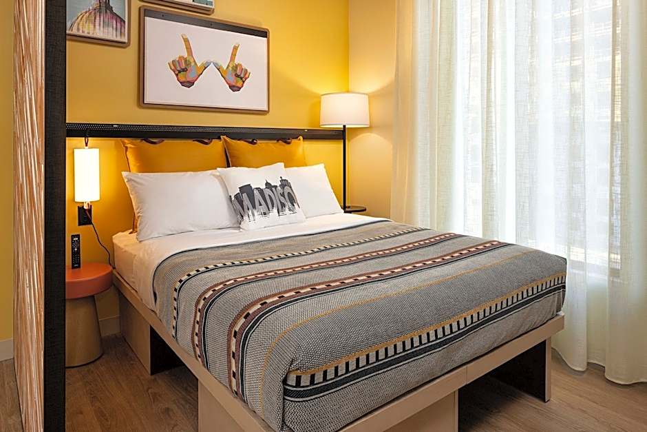 Step into the lively atmosphere of Moxy Madison, where chic design meets quirky character! Indulge in all the top-notch amenities, including a fitness center to break a sweat, a restaurant to satisfy your cravings, and a stylish bar for evening cocktails with friends or fellow travelers. Don't have a furry friend? No problem! The Moxy is pet-friendly (with extra charges) so you can bring your four-legged companion along for the adventure. Plus, with free WiFi and streaming services, your downtime can be just as entertaining as your outings.