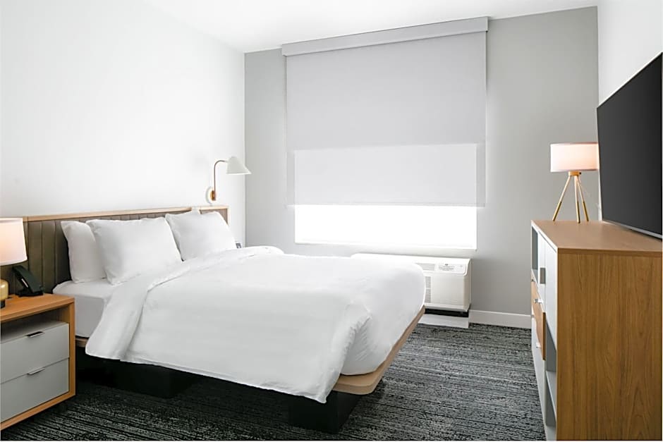 Accommodations offer a kitchen with kitchenware and a kitchenette, air conditioning, non-smoking options, extra-long beds (>6.5 ft), soundproofing, and a bathtub. Upper floors are accessible by elevator, easing arrivals and check-ins. Room options span Studio configurations such as Studio, King, Sofa Bed (1 king bed plus sofa bed), Studio, Queen (2 queen beds), and Studio, 2 Queen (two queen beds), along with Suite, 1 Bedroom, Sofa Bed for extra space.