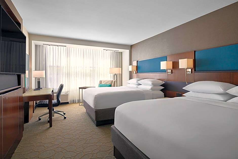 The hotel offers guest rooms with either 2 Queen beds or 1 King bed. The rooms are double occupancy and have a size of 334 sqft. Smoking is not allowed in any of the rooms. The 2 Queen rooms can accommodate 4 adults and 3 children, while the 1 King rooms can accommodate 3 adults and 2 children.