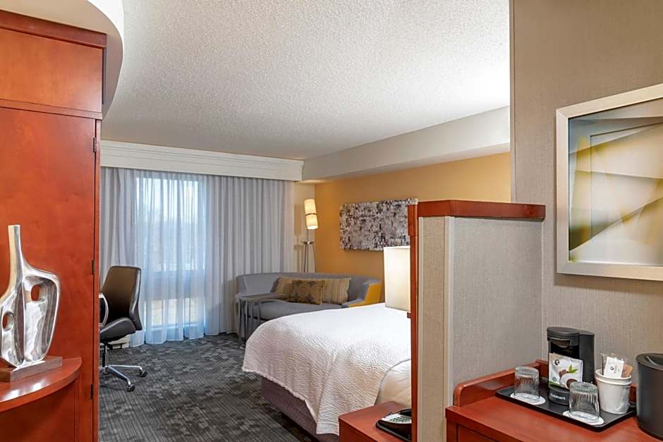 The Courtyard Milwaukee Airport hotel offers two types of rooms. The Queen Room with Two Queen Beds has a room size of 334 sqft and can accommodate 4 adults and 3 children. This room has 1 King size bed and 1 Sofa Bed. The King Room with Sofa Bed has a slightly smaller room size of 301 sqft but offers the same occupancy and bedding options as the Queen Room with Two Queen Beds. Smoking is not allowed in either of these room types.