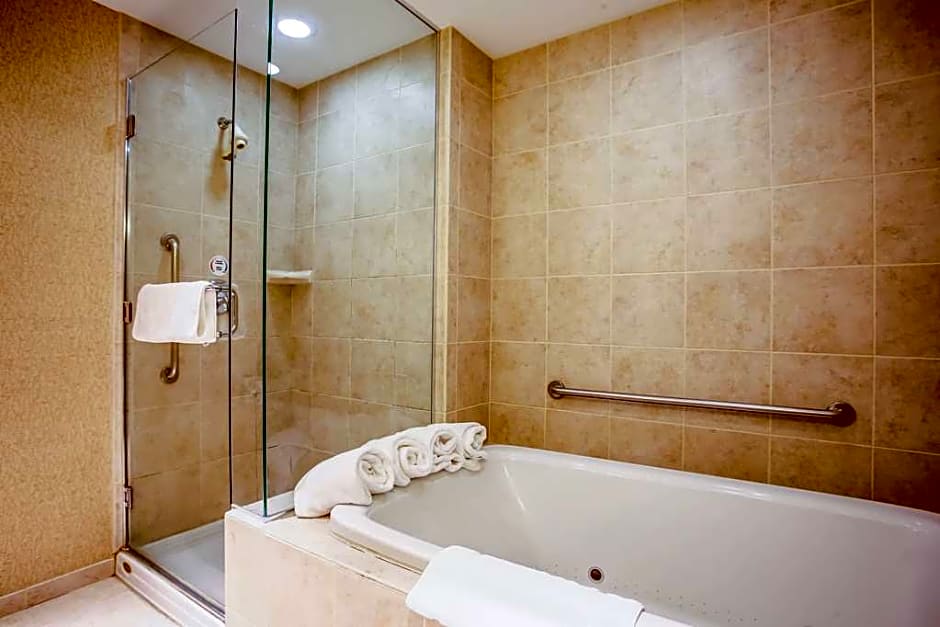 This mobility accessible standard room features one king-sized bed, and a roll-in shower. This room offers the latest in technology and ergonomic comfort to our guests. Roll-in shower with attached accessible seating, lowered vanity in bathroom, and lowered shelf in closet. The ergonomic Mirra chair by Herman Miller is good for your back and better for work. Enjoy an in-room movie or your favorite television show on our 36-inch HDTV. There's also a microwave, refrigerator and coffee/tea maker to help you feel at home. Smartwater is available for purchase in the guest rooms of the Hilton Garden Inn Park Place Hotel in Milwaukee. Any corresponding photo may not reflect the specific accessible room type or room feature.