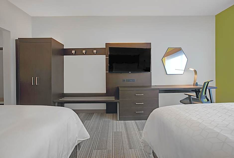 The Holiday Inn Express - Milwaukee Downtown offers a variety of room types, including Queen Suites with two queen beds, King Rooms, and King Suites. All rooms are non-smoking and range in size from 301 sqft to 388 sqft. The rooms can accommodate between 2 to 6 adults and have bed options of queen size, king size, or twin beds.