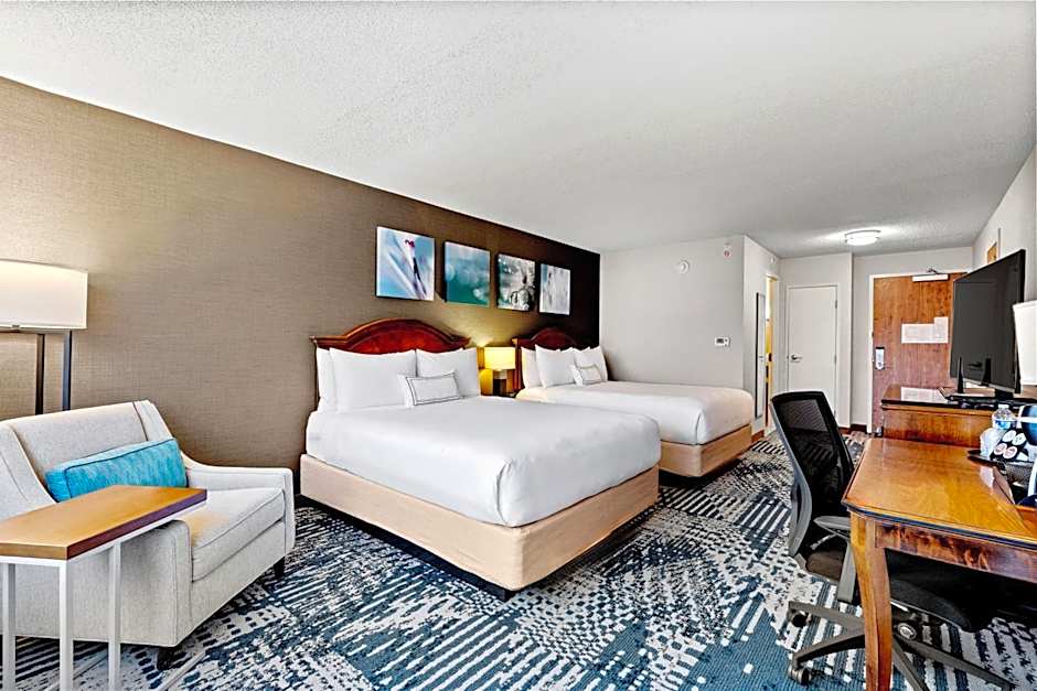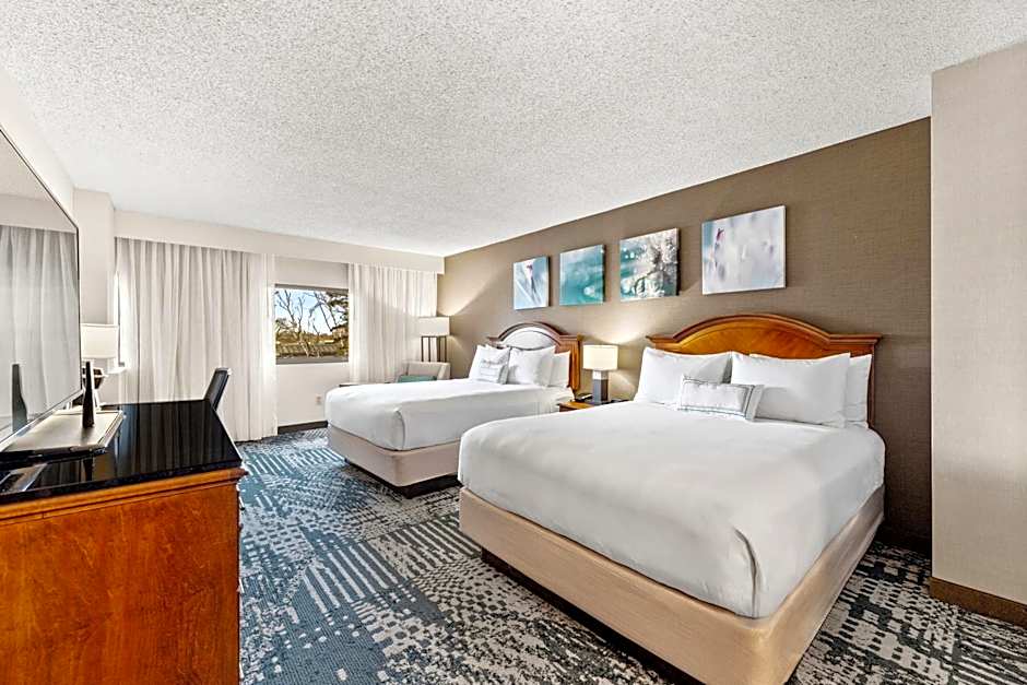"Experience comfort and luxury in our Queen Room with Two Queen Beds on the Concierge Level, featuring private bathroom, bathtub, and flat-screen TV. With enough space to accommodate 4 adults and 3 children, it's perfect for families or groups seeking an unforgettable stay." (240 characters)