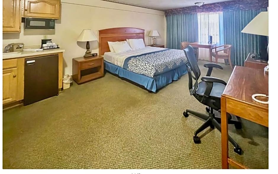 This Executive room features a King bed, a flat-screen cable TV, hair dryer, microwave, mini-fridge, iron, ironing board and desk for conducting business on the go.
