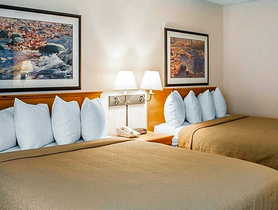 The Quality Inn Rhinelander offers a variety of room types including Superior Queen Rooms with Two Queen Beds, King Rooms, and Queen Rooms with Two Queen Beds. All rooms are non-smoking and have a room size of 355 sqft. The rooms accommodate different numbers of adults and children, with bed sizes including Queen and King size beds.