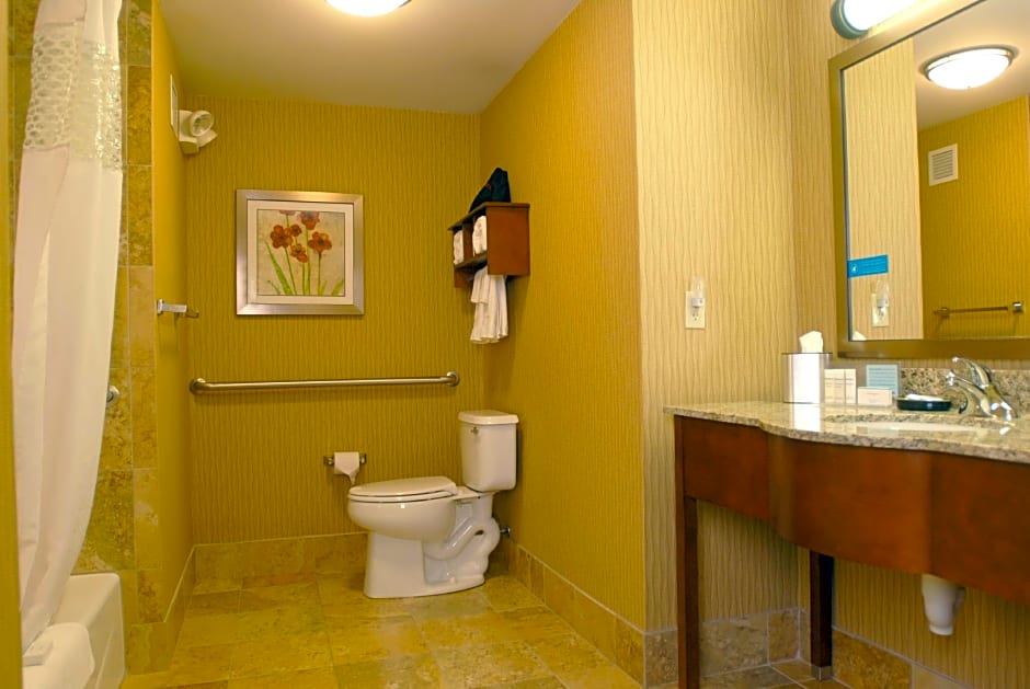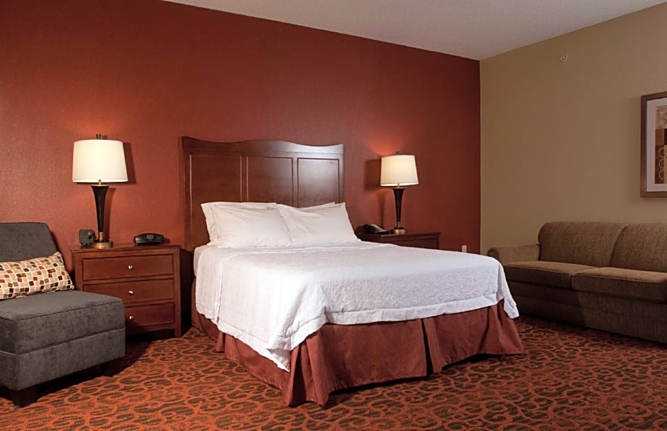 Sofa bed, desk, ergonomic chair, microwave, mini-refrigerator, free WiFi, 32-inch LCD HDTV. Enjoy your stay in this spacious guest room, featuring a comfortable king-sized bed and sofa bed. Surf the web with our free WiFi access, or use it to help you get some work done in comfort at the desk with ergonomic chair. Prepare a snack in the small kitchen area, equipped with a microwave and mini-refrigerator. Stretch out on the sofa and watch premium HD channels on the 32-inch flat-screen TV. Settle down for the night in the clean and fresh Hampton bed®. Other amenities in this room include on-demand movies, bath products, fluffy towels, and a coffee machine.