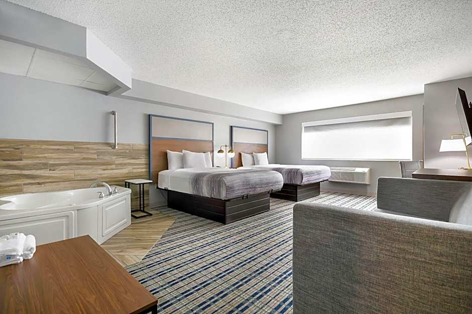 Guest comfort is boosted by free on-site parking and free WiFi, plus an indoor swimming pool, spa tub, and hot tub. Additional perks include a 24-hour front desk, soundproof and non-smoking rooms, kitchenette, air conditioning, and elevator access, with meeting/banquet facilities and access to a golf course; pets are welcome with extra charges.