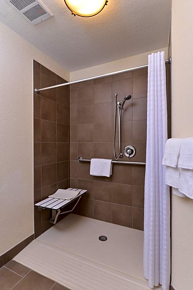 I booked a handicapped accessible room for my husband who uses a mobility scooter. There was plenty of square footage for him to get around the room. The bathroom had a walk in shower, easy access and a seat to sit on while showering. The bed was very comfortable and the pillows were comfy as well. Overall, a nice hotel to stay at. I would definitely recommend this hotel!
