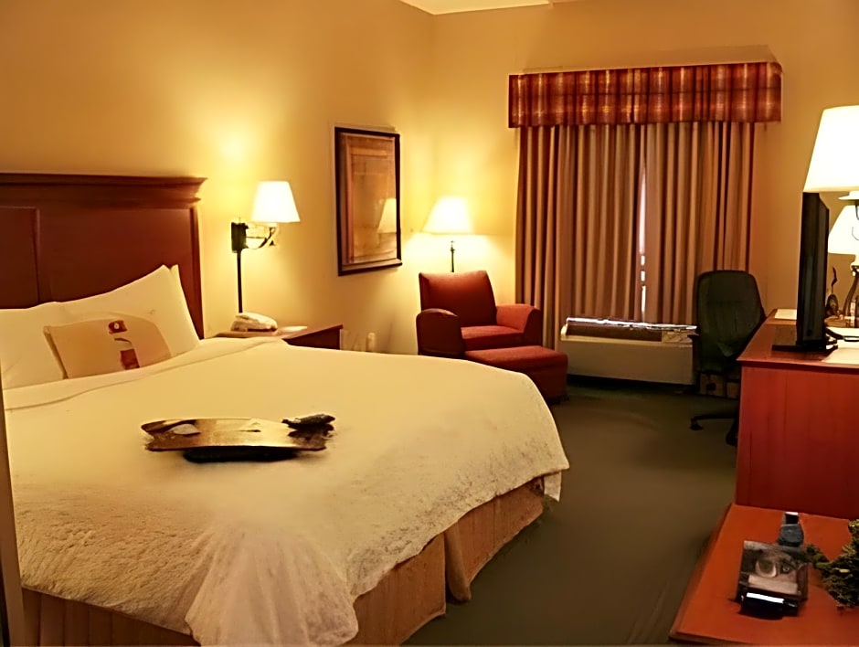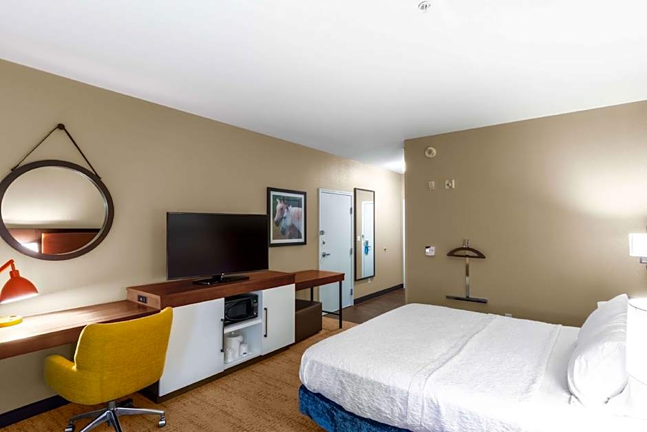 32-inch LCD TV, work desk, easy chair & ottoman, coffeemaker, free WiFi access Enjoy a restful stay in this comfortable room with a clean and fresh Hampton bed®, an easy chair and ottoman and a 32-inch TV with HD channels. This room also features a large work desk, a coffeemaker and free WiFi access to help you to stay connected when on the road. The bathroom contains plush towels and a shower featuring a curved shower rod for added space and light.