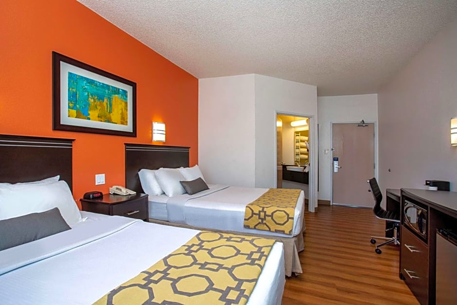 A variety of room options includes suites and queen rooms, with non-smoking rooms available for a comfortable stay.