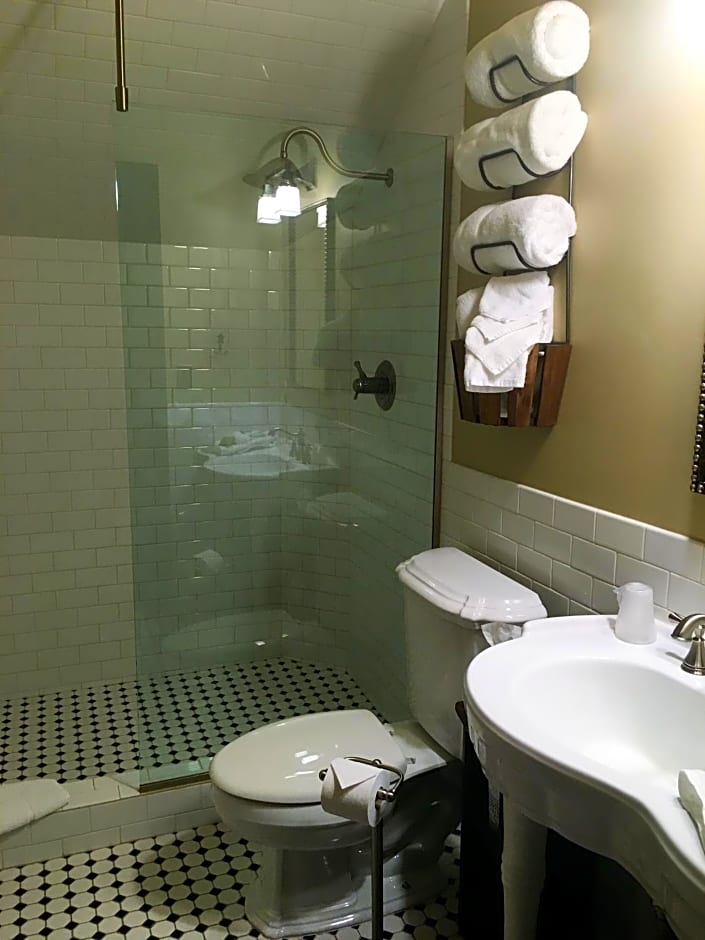 It’s a charming, historical hotel. Room was very spacious, clean and had a wonderful authentic decor. The bathroom looked like it had been recently renovated and it was also very large (no shower but a huge tub). The staff was friendly and very welcoming. The room was also very well stocked with great quality bathroom products as well as a coffee machine, water bottles and earplugs (which we didn’t end up needing despite the proximity to the train tracks). The daily fare includes breakfast which was well appointed. All the rooms are unique and dedicated to famous characters of the Wild West. (Like Buffalo Bill). There is a restaurant on site that has a great menu.