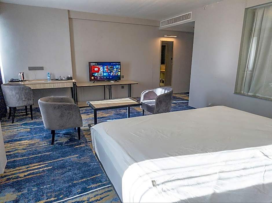 At Andijon International Hotel, guests can choose from a variety of room types, including Queen Rooms, Family Suites, Deluxe King Rooms, and Deluxe Double Rooms. The hotel does not allow smoking in any of its rooms. Most rooms accommodate either one adult or a combination of adults and children, with bed options ranging from double beds to king-sized beds. Room sizes range from 269 to 807 square feet.