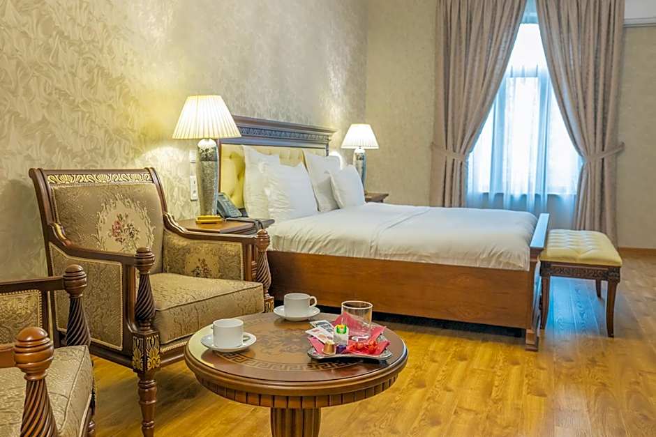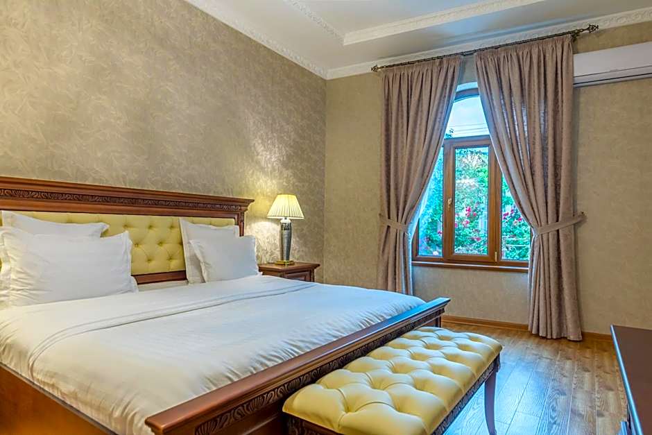 As the sun sets over the historic city, take a leisurely stroll through the hotel's enchanting garden, or unwind on your private terrace and absorb the beauty of Samarkand's skyline. The front desk is at your service around the clock, ensuring your stay is as convenient and seamless as possible. With complimentary Wi-Fi and room service, you can stay connected and savor delicious meals in the comfort of your room.