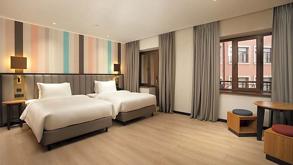 The spacious air-conditioned double room provides a flat-screen TV with streaming services, soundproof walls, a wardrobe, a safe deposit box as well as an inner courtyard view. The unit offers 2 beds.