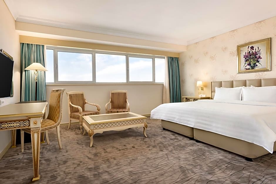 The hotel offers a variety of room types including Deluxe King Rooms, Senior King Suites, Junior King Suites, Twin Rooms, and Standard King Rooms. All rooms, regardless of type, have non-smoking policies. Accommodations range from 2 adults and 1 child to 3 adults and 3 children. Bed sizes include King size and Twin beds. Room sizes vary from 248 sqft to 1076 sqft.