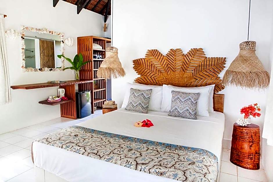 At Aore Island Resort, guests can choose from Studio Beachfront, 1 Bedroom Gardenview, and 1 Bedroom Beachfront bungalows. All rooms are non-smoking, with varying bed configurations and room sizes. Occupancy ranges from 2 adults in the Studio Beachfront to 3 adults and 2 children in the Gardenview and Beachfront rooms.